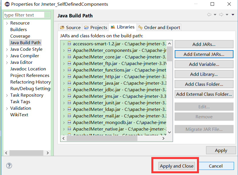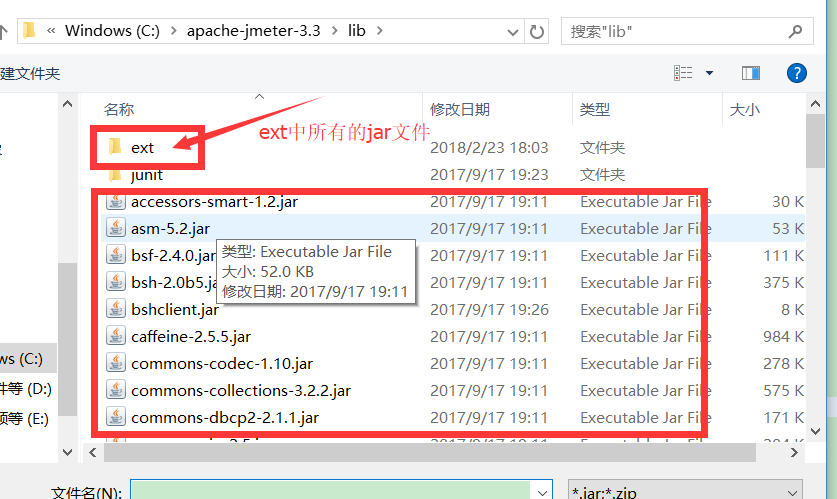 但是,由于担心存在jar包的依赖问题,所以建议导入所有的Jmeter安装目录lib以及libext下的jar文件,导包步骤如下