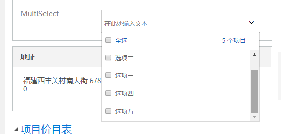 建完的字段放到页面上,鼠标点击值区域,显示的是一行字"在此输入文本",有方会有个下拉箭头,这个和之前的单选选项集点击值区域直接下拉出值不同
