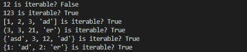 print(f"{i} is iterable? {is_iterable(i)}")
