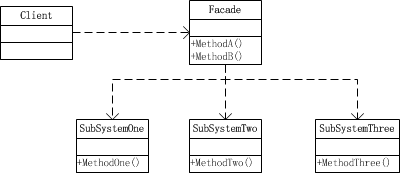 这种模式涉及到一个单一的类,该类提供了客户端请求的简化方法和对现有系统类方法的委托调用。