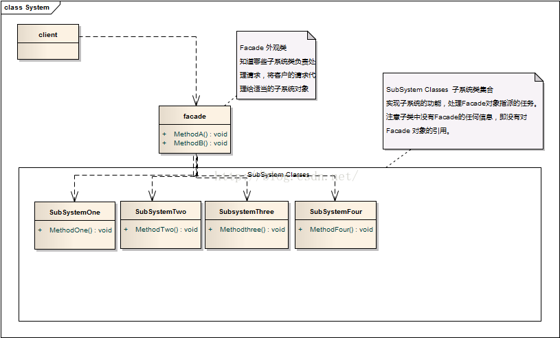 2.子系统因为不断重构演化而变得越来越复杂,用facade减少依赖