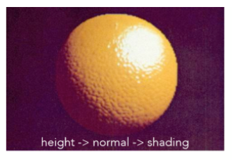 之前我们用纹理是为了替换Blinn-Phong模型里的参数kd,除此之外,纹理还可以定义任何属性。比如它可以定义在一个模型上的点的相对高度。一个球假设它原本有一个基础的表面,然后纹理可以定义这个表面上的点沿着法线方向的相对高度。