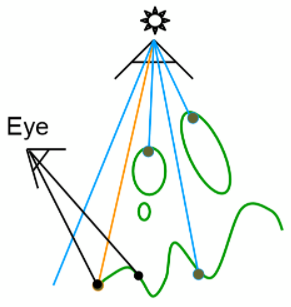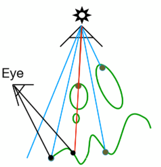 产生这种问题的原因是因为光源具有体积,导致,有的地方完全看不到光源(本影, Umbra), 有的地方能看到一部分光源(半影,Penumbra)。所以阴影的边缘会有过渡的情况,从而产生软阴影现象,就像上图中太阳与地球的示意一样(全日食与半日食)