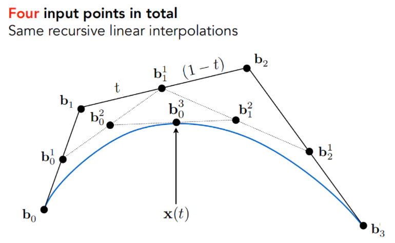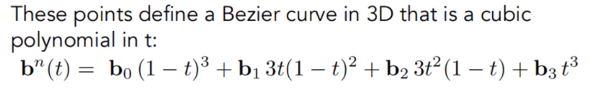 - 对于三次贝塞尔曲线(Cubic Bezier),它的起始位置的切线一定是3(b1-b0),终点位置的切线为 ,如果控制点数不是4,那么系数就不是3了。