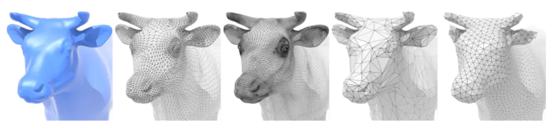 用三角形来描述模型,那我们就需要了解一些关于网格的操作,例如 Subdivision (用更多的三角形来得到更光滑的模型),Simplification(减少网格面,以节省存储量),Regularization(使三角形都接近于正三角形)。