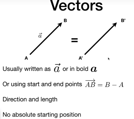 和高中学习的向量一样,图形学中向量也是两个点的坐标的差,表示一个点指向另一个点的方向,有长度大小,且方向和长度与位置无关