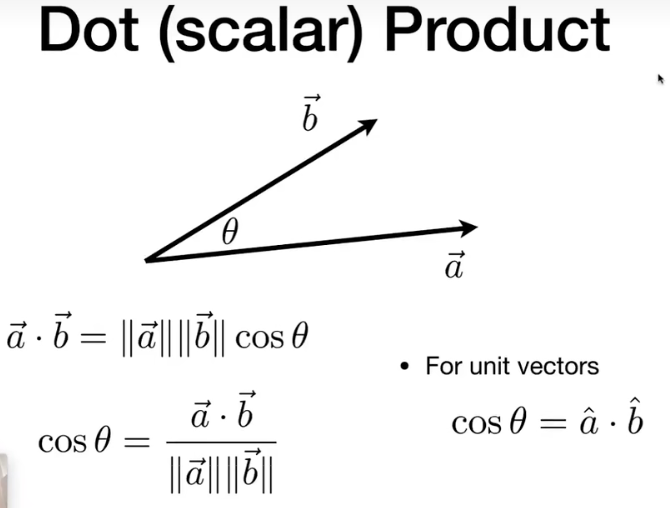 向量点乘得到的是一个标量,两个单位向量点乘得到的是它们的夹角余弦值