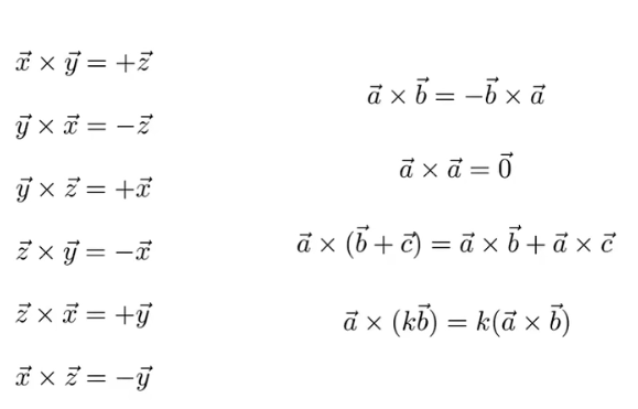 向量叉乘的运算律(本课中使用的为右手坐标系)