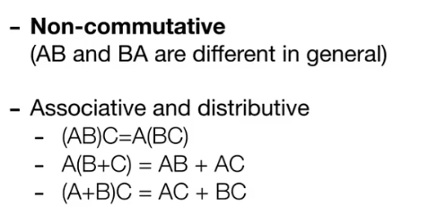 没有交换律,但有结合律和分配律