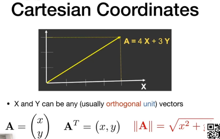 在笛卡尔坐标系中,任何向量都可以用两个正交的单位向量表示,并且图形学中默认使用列向量