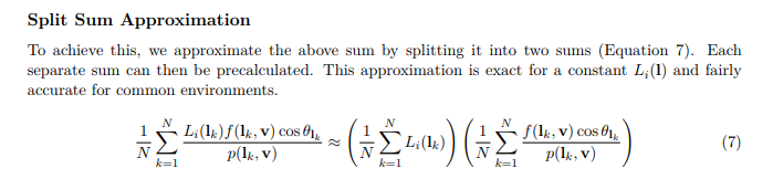 再用UE4的split sum Approximation大法,公式再可变形如下: