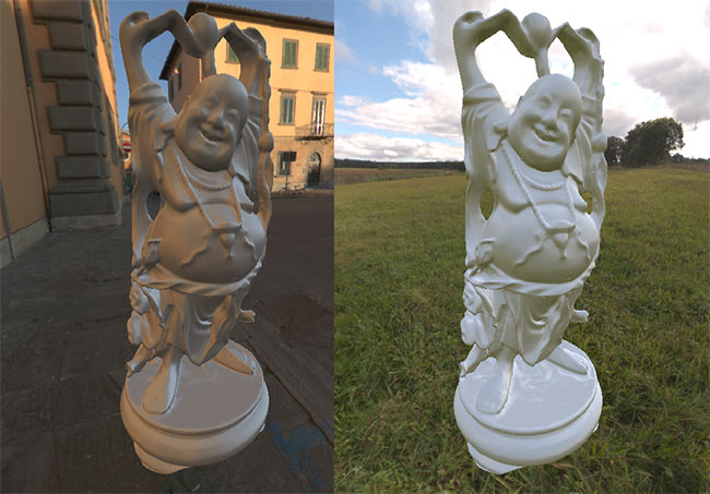 | Figure 5: Left the radiance map, right the irradiance map (Lambert rendering equation) |