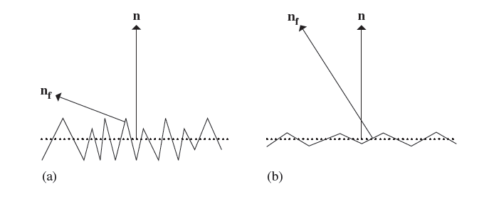 microfacet normals, the rougher the surface is. (b) Smooth surfaces have relatively little variation