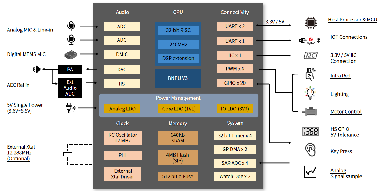 下图是CI130X语音芯片应用框图: