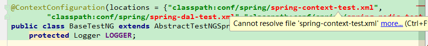 在使用testng进行单元测试时,idea提示无法解析引入的xml文件: