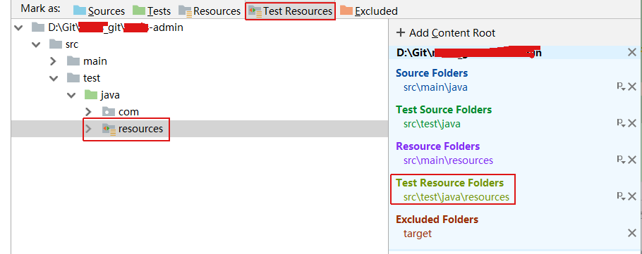 这是由于没有将Test Resources引入class路径中导致的,以idea为例,可以进入Project Structure菜单,选择相应的项目模块,点击Test Resources按钮,就可以引入测试资源了。