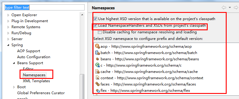 2017/9/9 解决 勾选上 Load NamespaceHandlers and Xsds