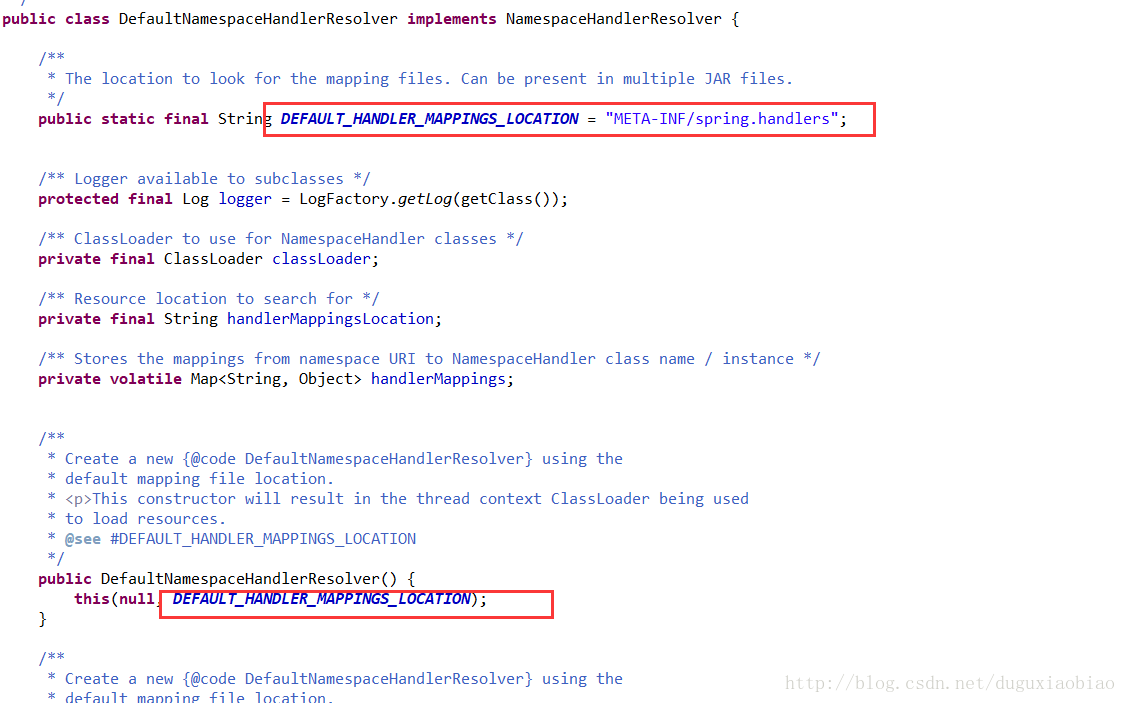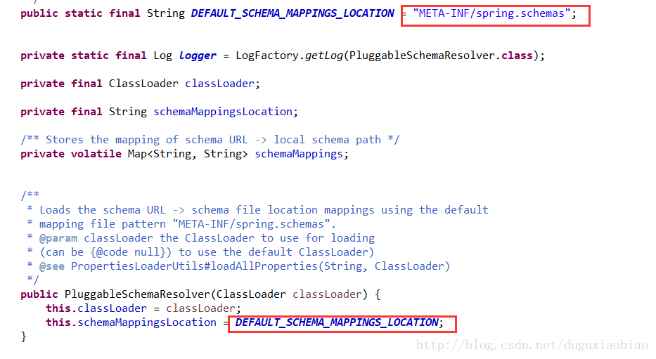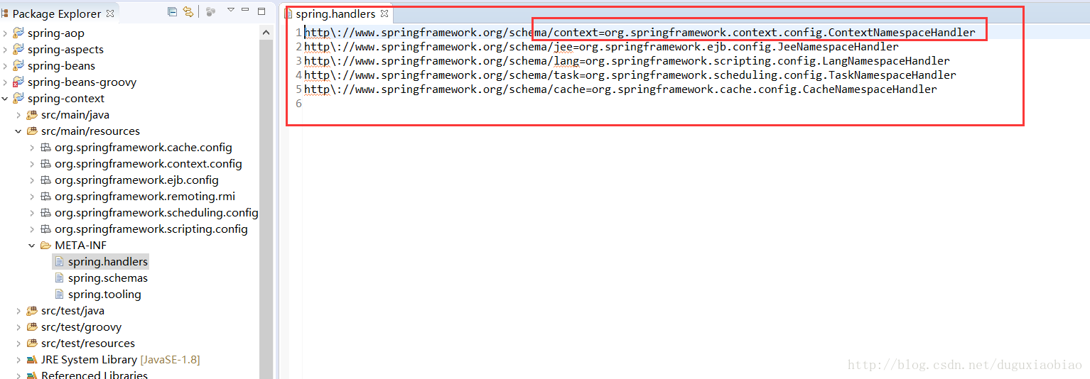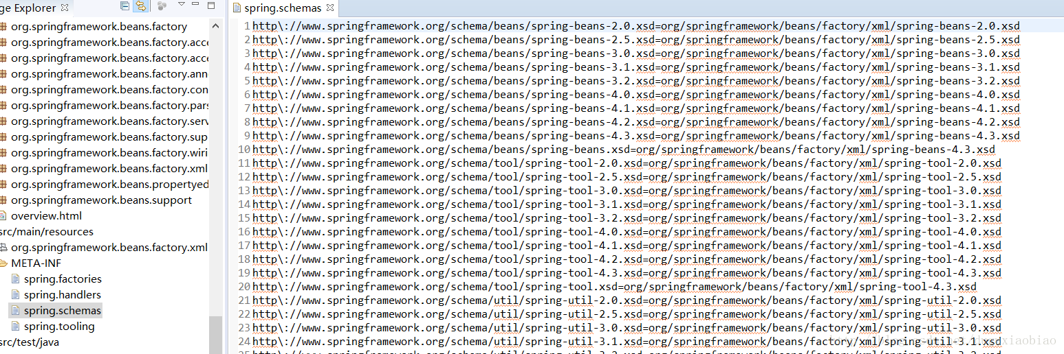 看起来是不是和 上面的 META-INF/spring.schemas很像,对 思路大致一样