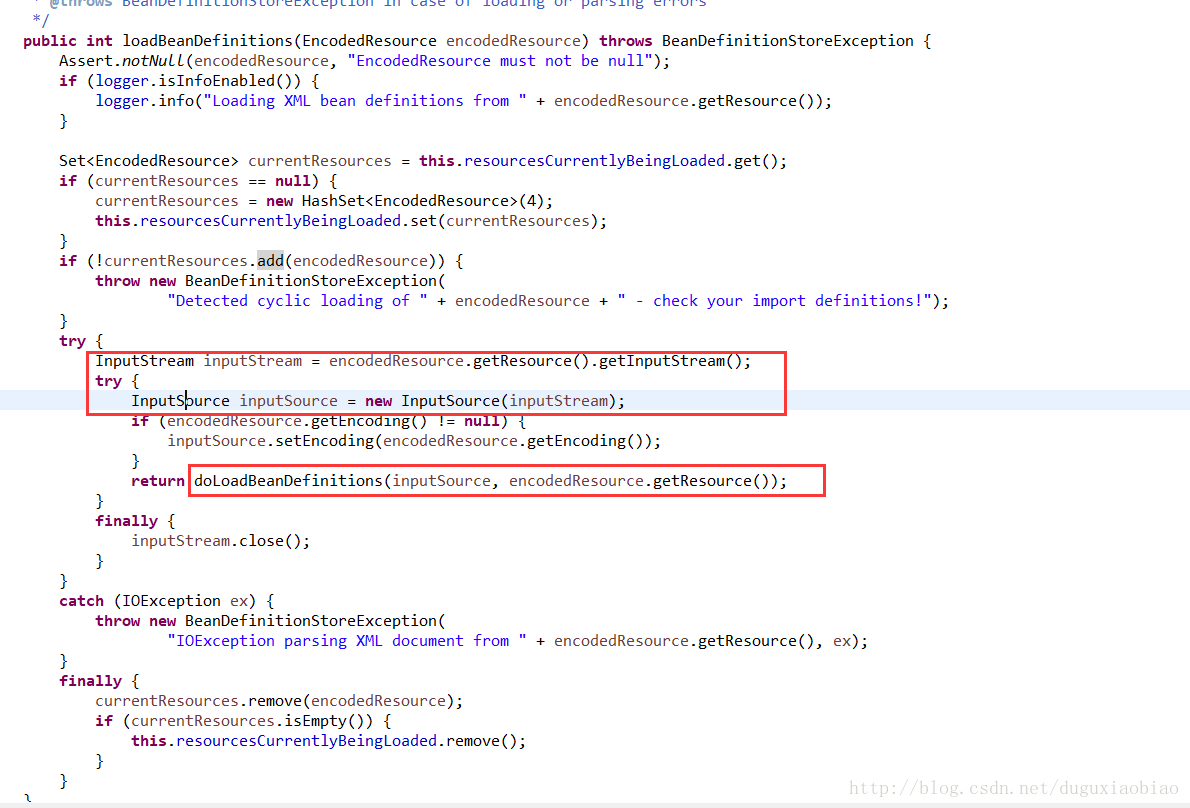 第二步,是真正开始解析 XML了,下面让我们进入 到 doLoadBeanDefinitions中吧。