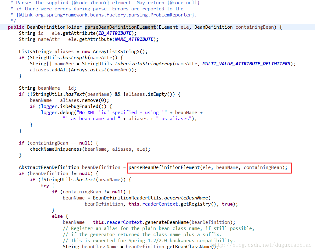 下面先进入 parseBeanDefinitionElement方法中