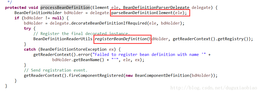 针对bean标签解析,进入 processBeanDefinition中