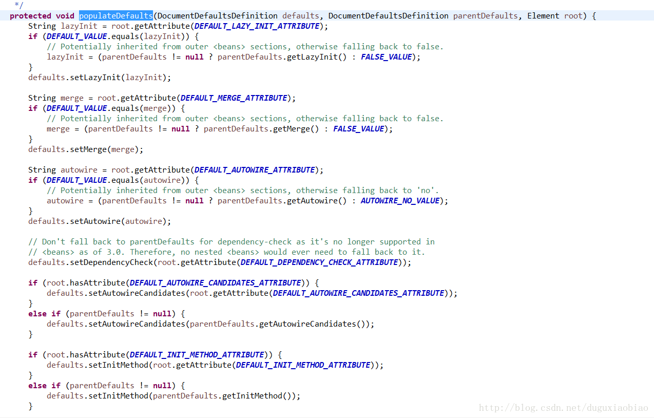 这里首先获取跟节点,也就是 beans节点,然后继续 看下去