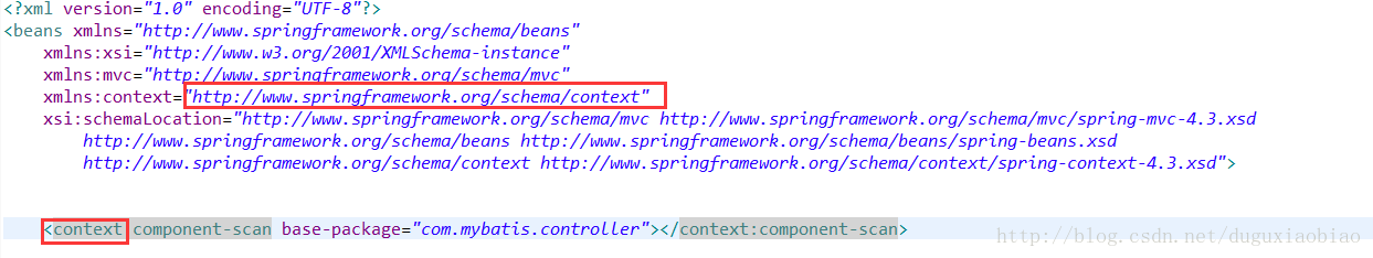 第一,获取当前标签的对应的 NameSpaceUri,什么意思呢,比如如下解析 context标签时,获取 uri