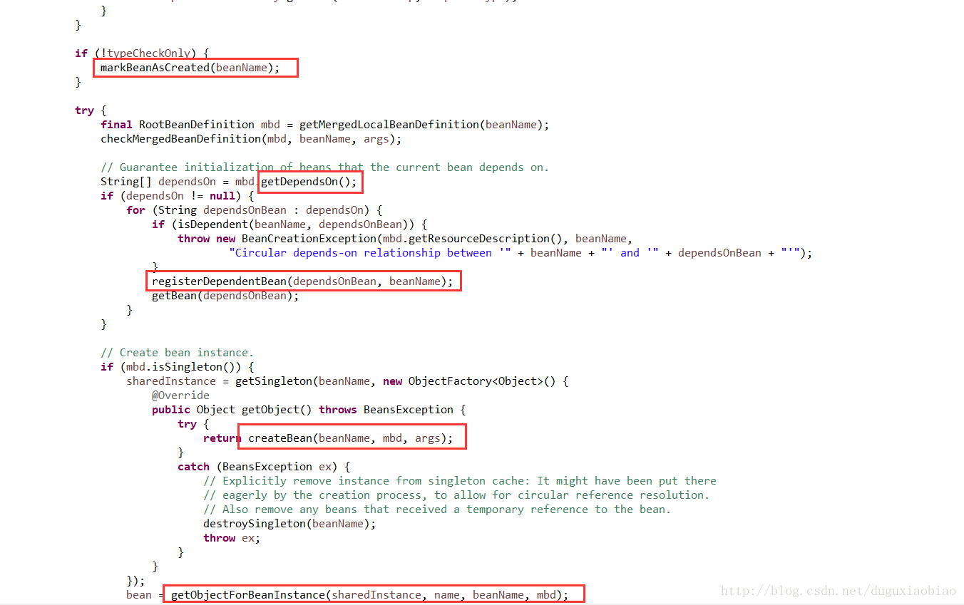 (6)下面就是获取当前要实例化的bean的所有依赖,然后递归创建依赖的bean