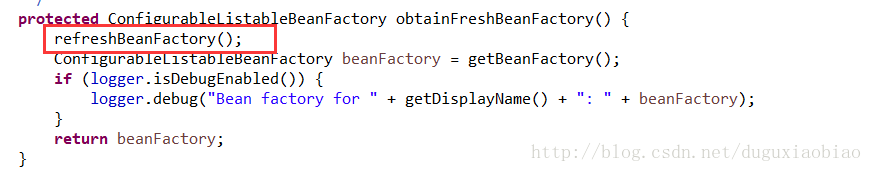 我们进入obtainFreshBeanFactory()方法中看看