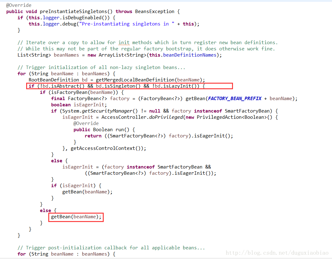 二,判断bean是否是抽象的、单例的、非懒加载的,如果满足这三个条件,则提供初始化工作