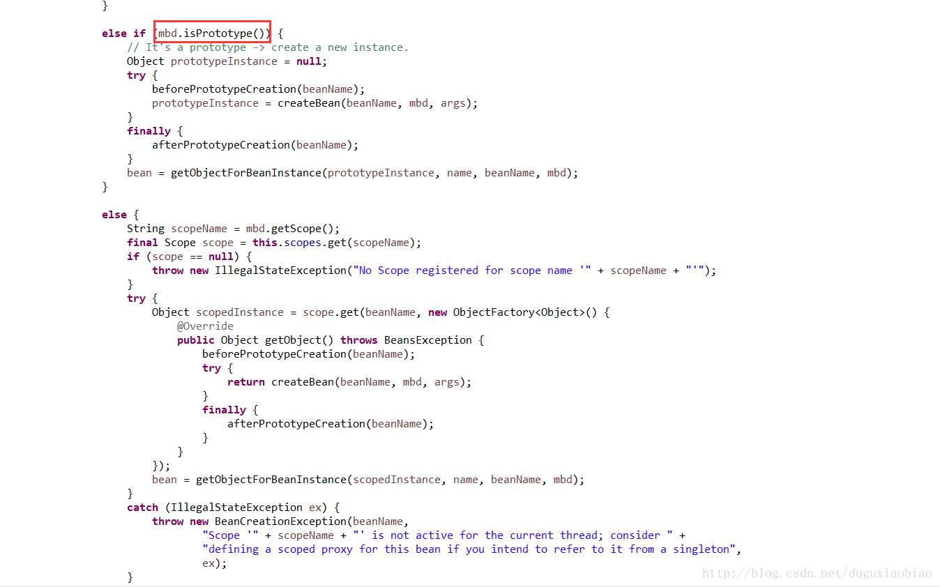 (7)最后,判断是否是单例的,还是prototype的,或者看scope,这里主要介绍单例的bean创建过程