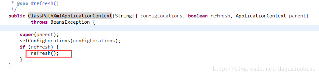 这里主要的就是 refresh()方法,进入看看