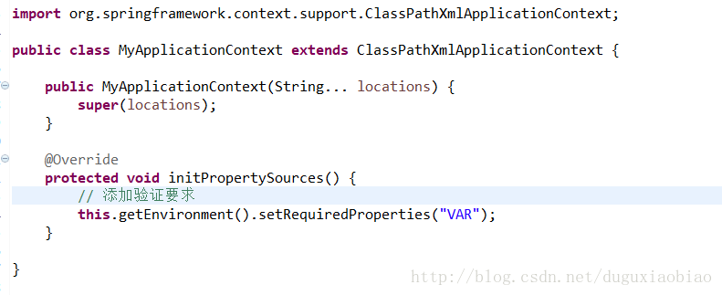 这两个方法看起来没有什么实现,应该这是一个spring的扩展,这里主要是验证环境变量是否存在,我们可以自定义一个ApplicationContext,集成ApplicationContext,重写 initPropertySources()方法,在其中我们可以要求必须存在某个环境变量,然后下一步验证的时候如果缺少某个环境变量时暴露异常。举个例子