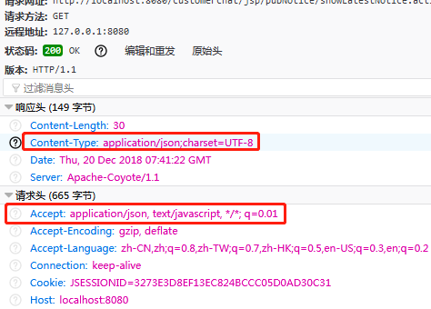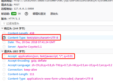 解决方法就是设置响应头的内容类型为文本,或者直接设置成json格式: