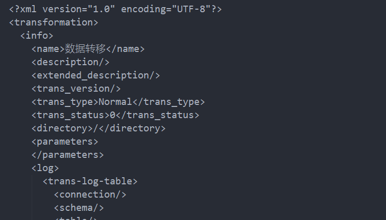 因为ktr转换文件是xml格式的。我们打开转换文件*.ktr看看: