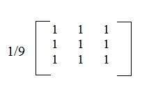 均值就是平均的意思,对邻近的像素做个平均:x[i][j]=1/9(y[i-1][j-1]+y[i-1][j]+y[i-1][j+1]+y[i][j-1]+y[i][j]+y[i][j+1]+y[i+1][j-1]+y[i+1][j]+y[i+1][j+1])