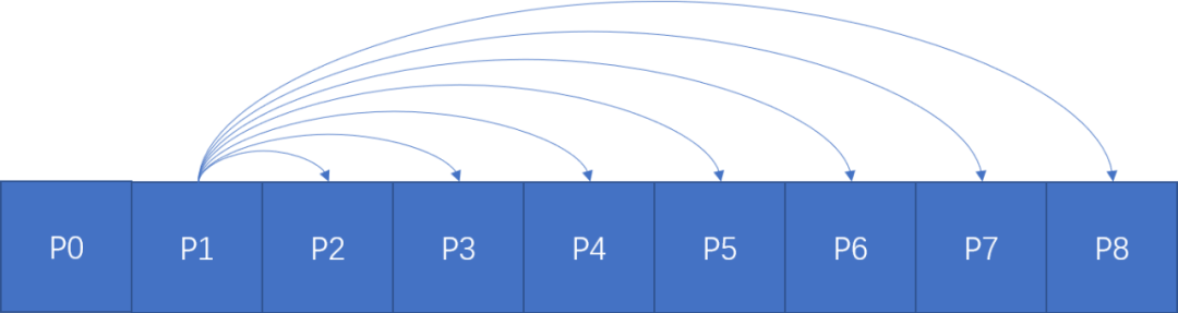 步骤三:分别依次比较P2与Pi(3 ≤ i ≤ 8)的大小。如果任意Pi大于P2,都交换Pi与P2的值。