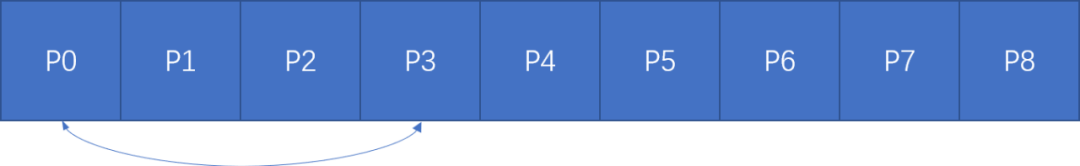 如果任意Pi大于P0,都交换Pi与P0的值,假设P3>P0,那么则交换P3与P0的值: