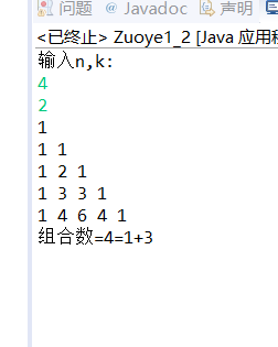 else System.out.println("组合数="+a[n][k-1]+"="+a[n-1][k-2]+"+"+a[n-1][k-1]);
