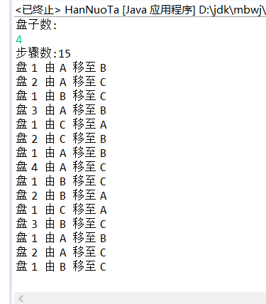 System.out.println("步骤数:"+new HanNuoTa().hanoiTower(n));