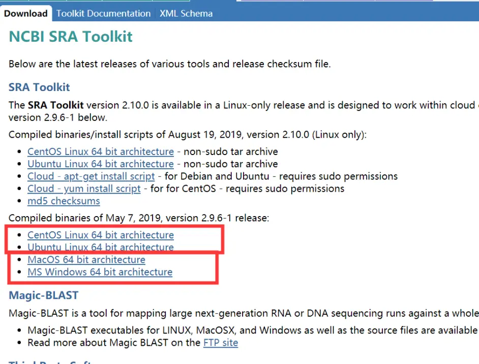 这里面提供了这么多软件,我们需要的是fastq-dump软件,prefetch这个软件可以直接从网上下载你要的序列,后面我会从视频中介绍。