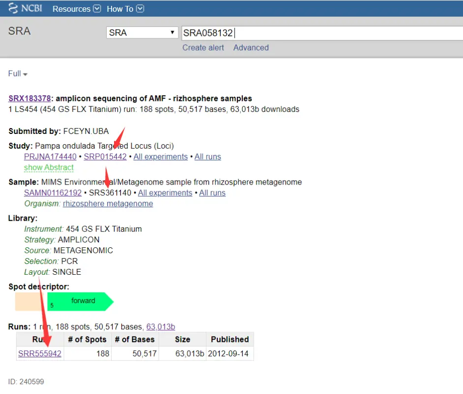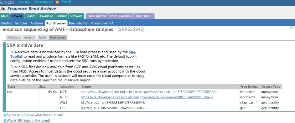 序列及其质量信息在SRA 数据库中以run为单元存储。run的检索号以前缀DRR、ERR或SRR开头。