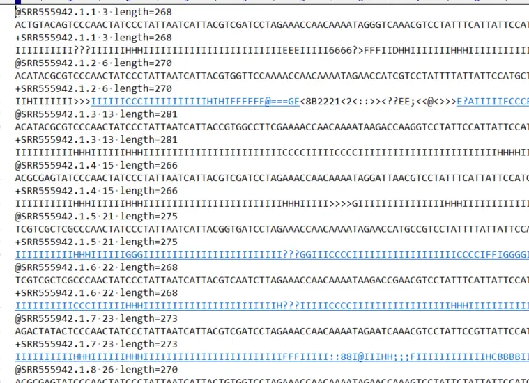 生成的是fastq格式的文件,里面是包含序列质量的。