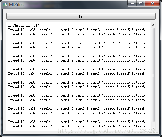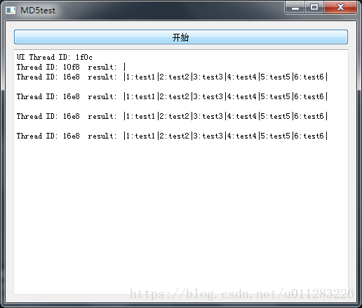QString str = "Thread ID: " + QString::number((int)QThread::currentThreadId(), 16) + " result: |";