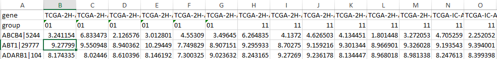 上面数据中01为tumor,11为normal