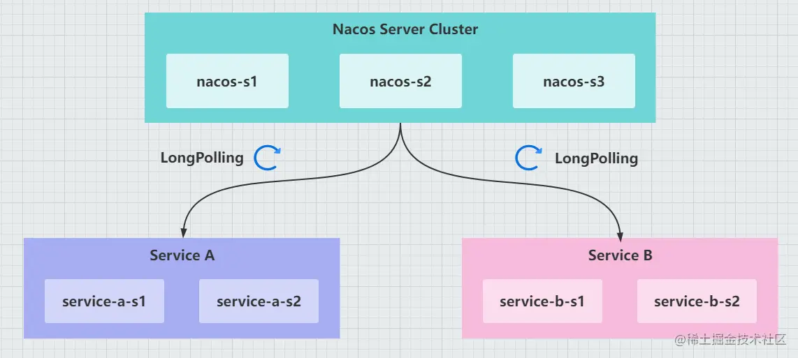 这种LongPolling的方式目前来看可靠性是比较高,因为Nacos服务端集群一般在生产部署是大于3的奇数个实例节点,并且底层基于raft共识算法实现集群通讯,只要不是同一时间超过半数节点宕机集群还是能正常提供服务。但是从实现上来看会有一些局限性:
