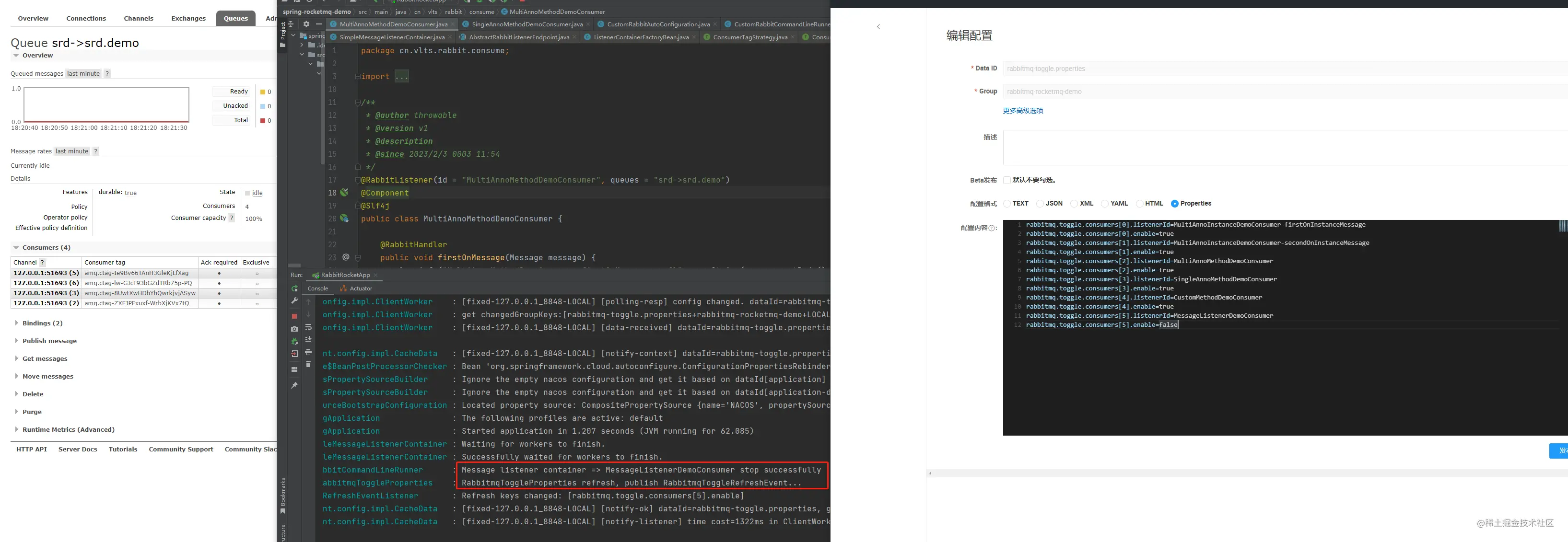 以上就是谨慎柠檬最近收集整理的关于通过Nacos配置刷新进行RabbitMQ消费者在线启停的全部内容,更多相关通过Nacos配置刷新进行RabbitMQ消费者在线启停内容请搜索靠谱客的其他文章。