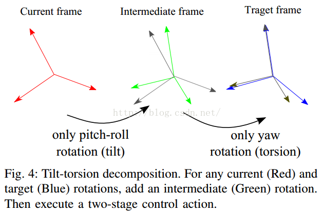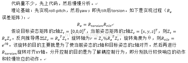 PS:PX4的姿态控制部分使用的是roll-pitch和yaw分开控制的(是为了解耦控制行为),即tilt和torsion两个环节。感性认识一下,如下图: