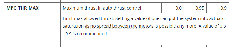 其中在第五步中有一个yaw的前馈控制(MC_YAW_FF):There is MC_YAW_FF parameter that controls how much of userinput need to feed forward to yaw rate controller. 0 means very slow control,controller will start to move yaw only when sees yaw position error, 1 meansvery fast responsive control, but with some overshot, controller will move yawimmediately, always keeping yaw error near zero。This parameter is not critical and can be tuned in flight, inworst case yaw responce will be sluggish or too fast. Play with FF parameter toget comfortable responce. Valid range is 0…1. Typical value is 0.8…0.9. (Foraerial video optimal value may be much smaller to get smooth responce.) Yawovershot should be not more than 2-5%。