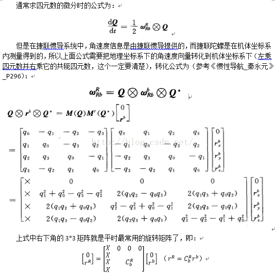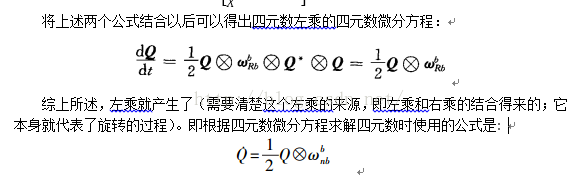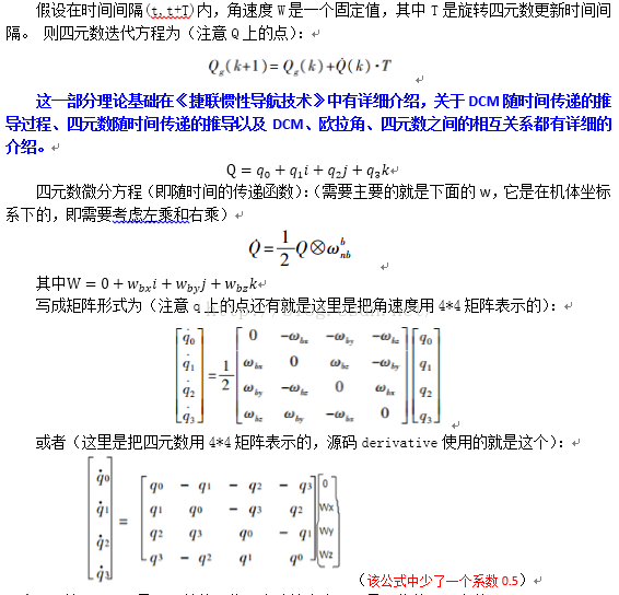 首先就是四元数的微分方程,然后就是四元数随时间的地推公式和DCM矩阵随时间的地推公式。在考虑四元数随时间的地推时,使用了离散数学的理论。
